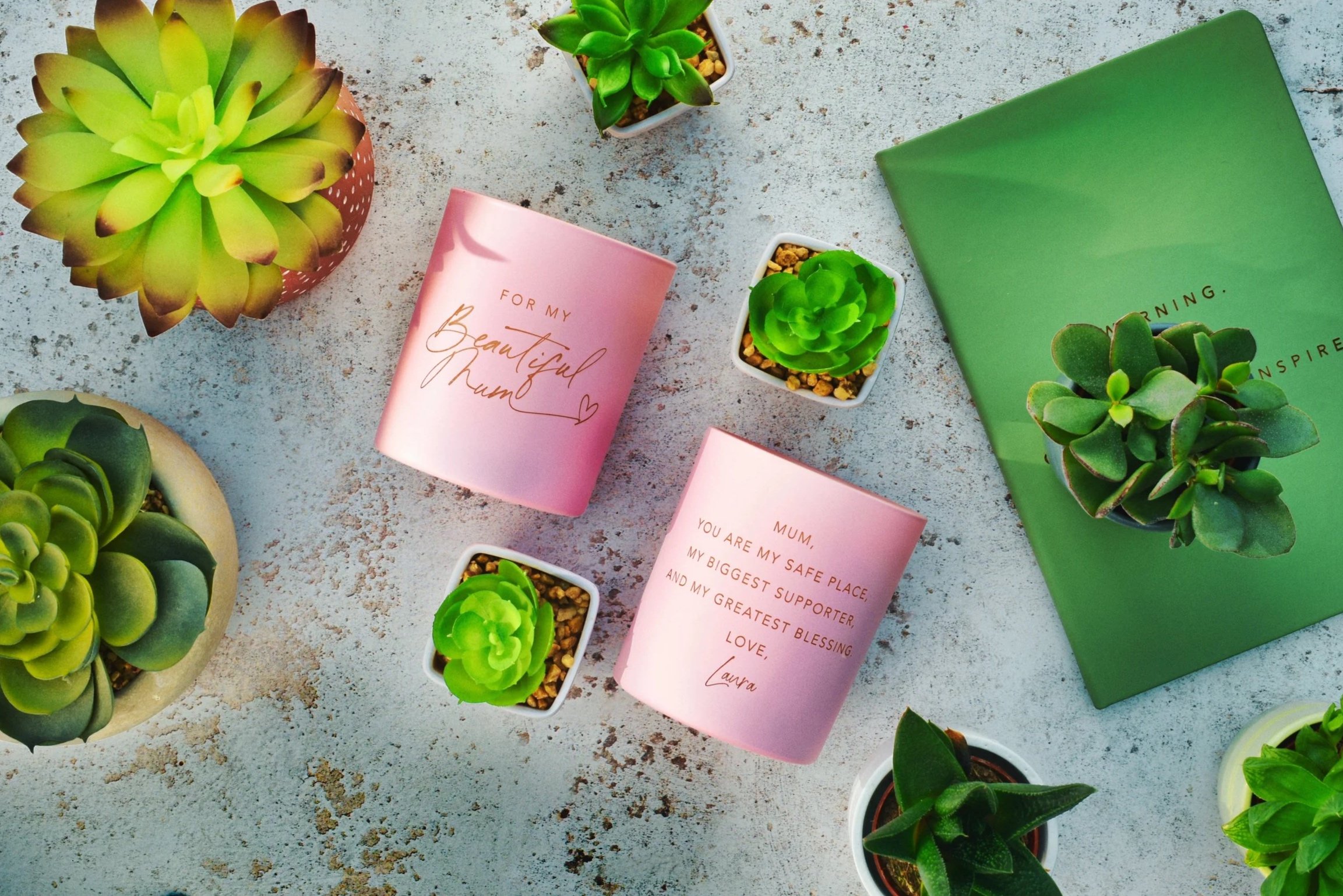At Beautifully Handcrafted, every candle, diffuser, and journal is made with intention — not mass-produced. We pour each product by hand, infuse it with carefully curated fragrances, and finish it with personal touches that tell a story. It’s the small, human details — the warmth of the wax, the texture of the paper, the glow of a laser-engraved message — that set our work apart.